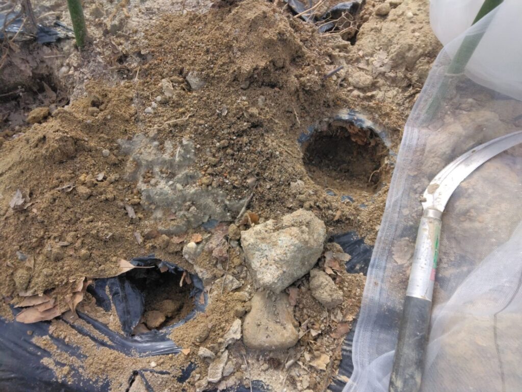 もし穴を掘ったときに、土がカラッカラなら、植え穴に水をそそぎ、水が引いてからじゃがいもを植えます!