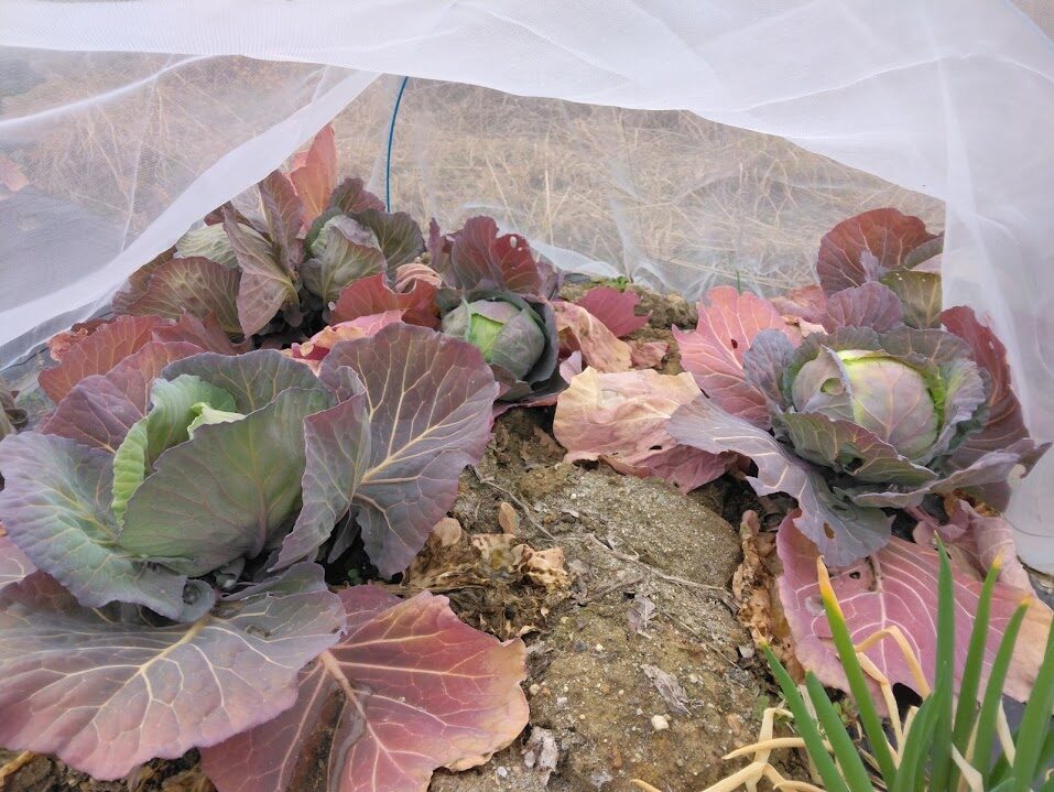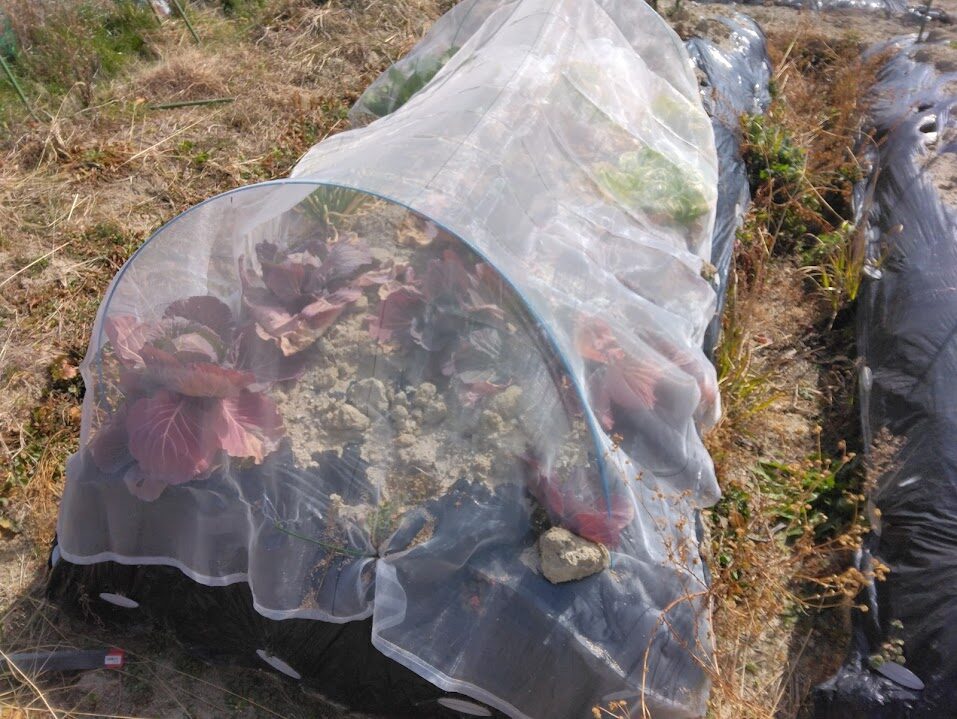 10月に植えて、虫食い対策としてトンネルを張って、そしたら虫食いなく育ってくれていました!