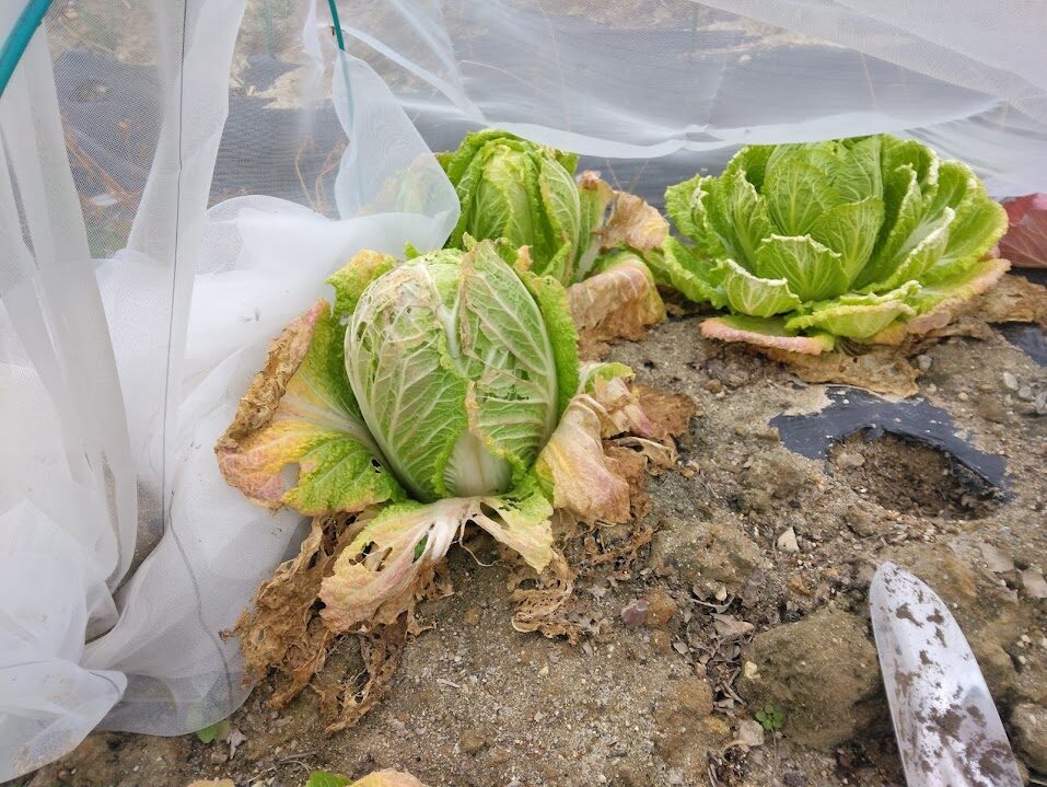 なので、多分今回収穫したきゃべつや白菜は10月頃に植えたもののはずです!