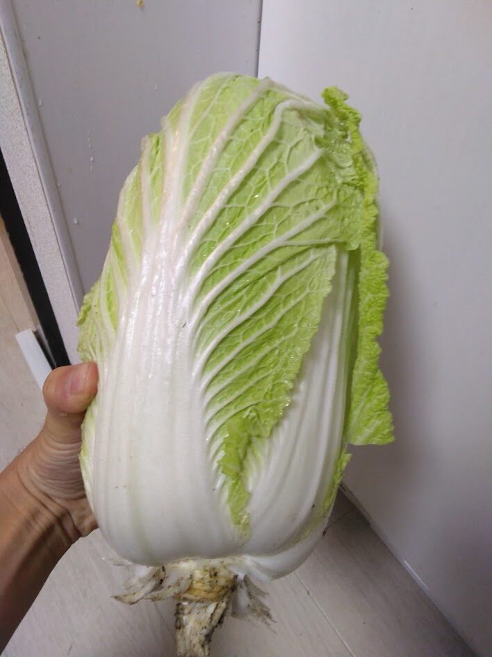 キャベツはそこまで大きくなくて、ハンドボールくらいの大きさ(直径20cmくらい)。