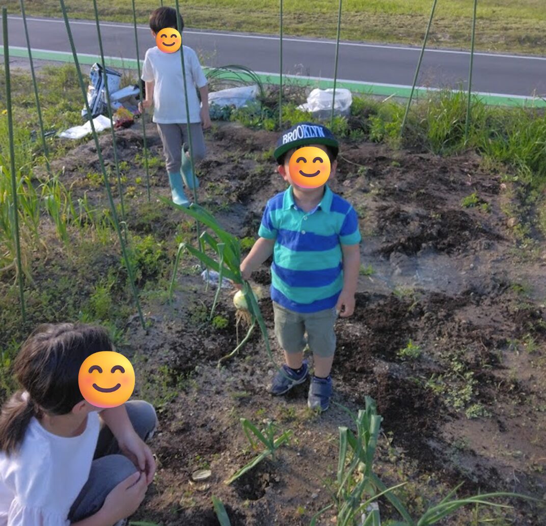 去年、玉ねぎ収穫体験していた内の息子は、ためらいなく、ずぼっと収穫。