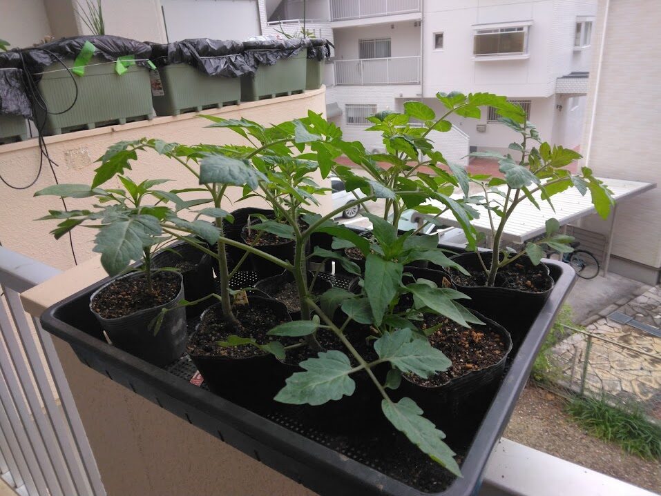 10株のトマトがどう育つか、楽しみでもあり、ちょっとドキドキでもあり。
