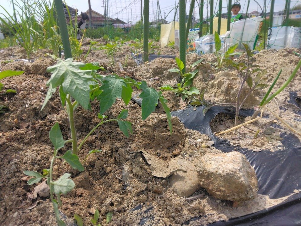 今年こそはうまくいかせたい、という思いで、同じ場所にトマトを植えました。