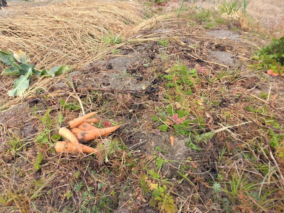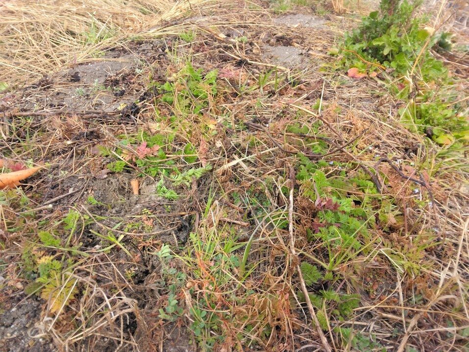 この畝、そういえば端のほうで、たしか10月頃に人参の種まきをしていました。