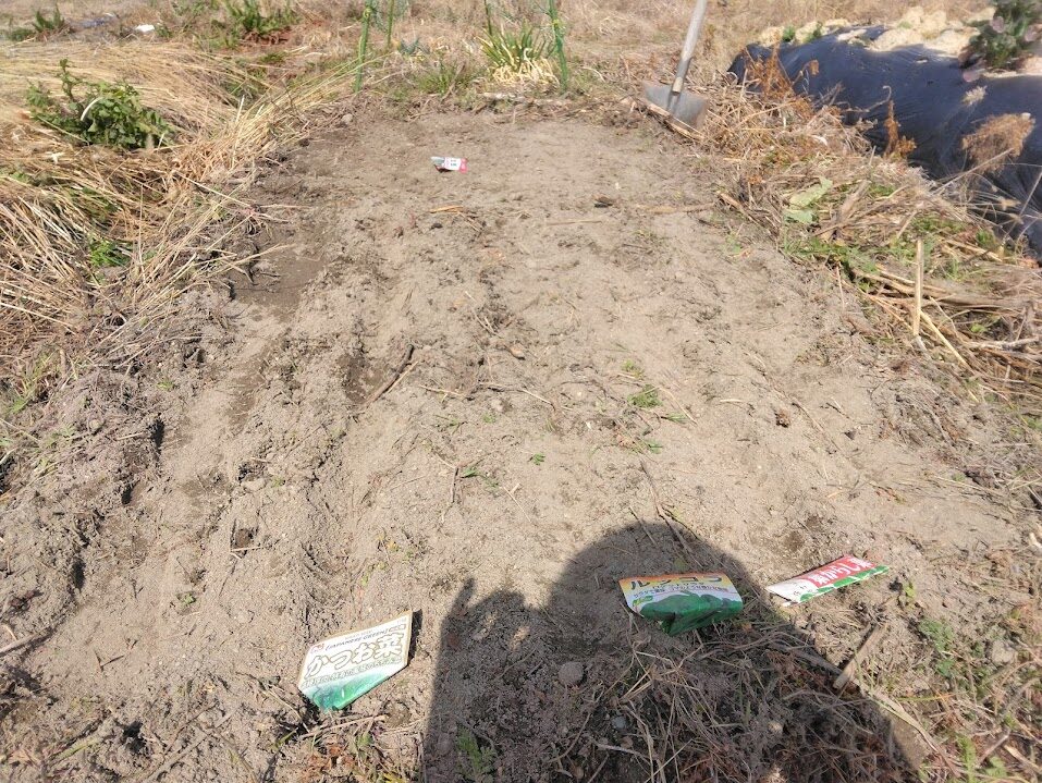 ほんで、今回は手前から2つ目の自然菜園畝に葉野菜などの種まきをすることに!