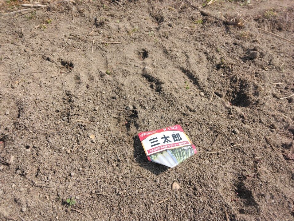 人参&葉野菜ゾーンのさらに奥側のエリアには大根も撒いておきました。