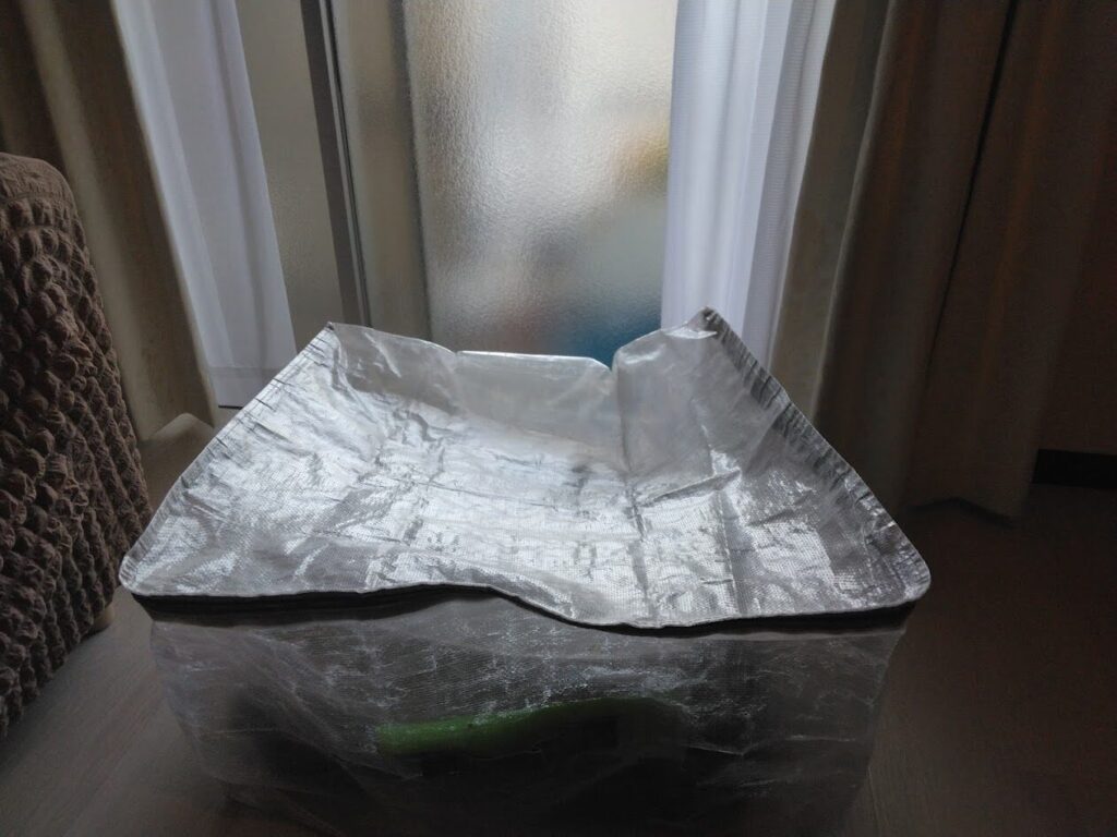 段ボールの中に入れているのも、温度が下がりすぎないようにするためのせめてもの工夫です。