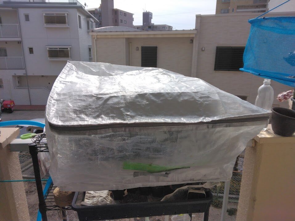 寒すぎる時期や日には透明のケース(衣装ケースなど)にトレイごと入れてやることで地温を確保できます。