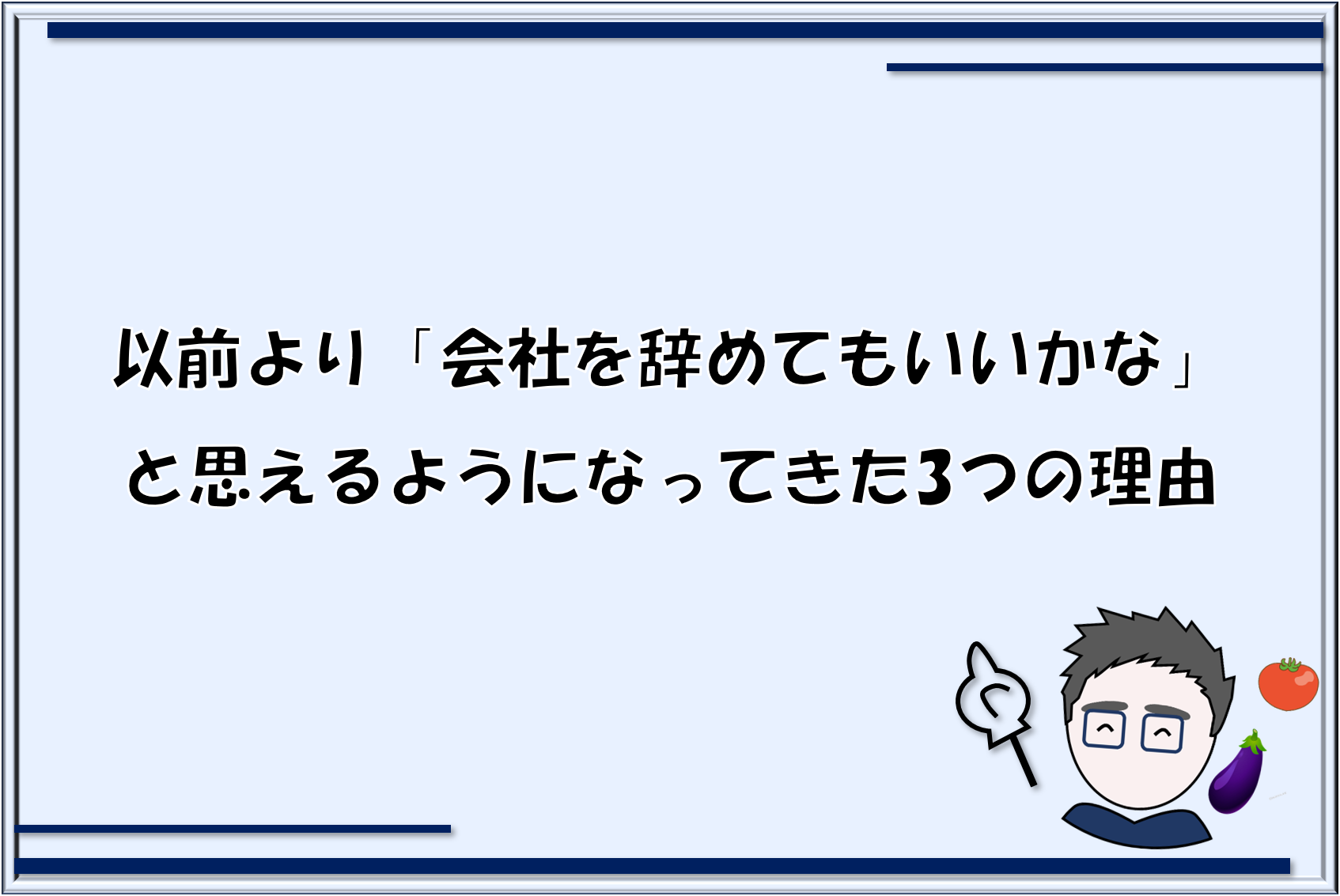 なので、「会社を辞めたいけど怖い。辞めた人ってどんな風な心境の変化で辞めたんだろう」と気になる人にとっては何かヒントになるかと思います。