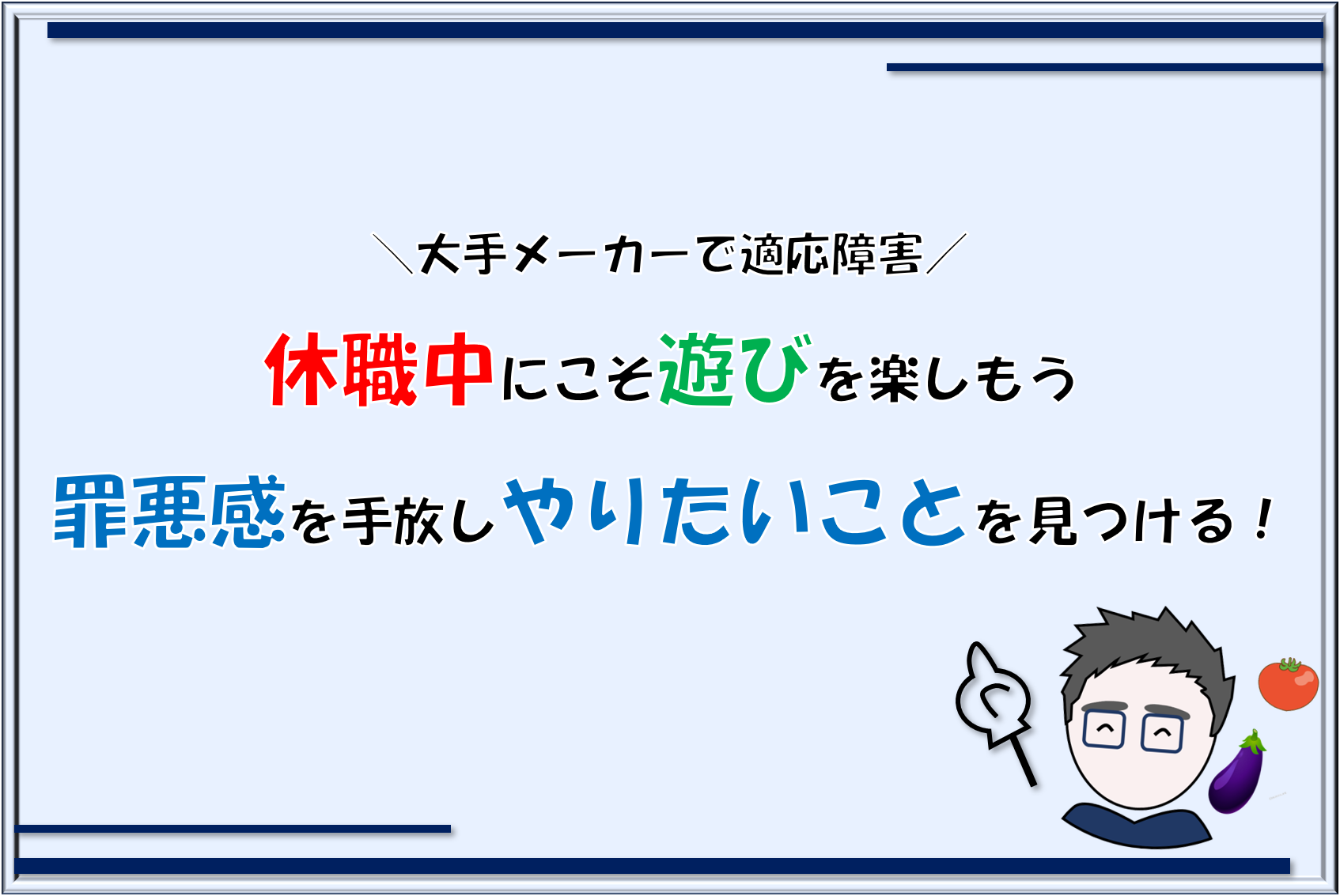 今回の記事では、適応障害になって今後のことが不安な人ほど、罪悪感に負けず、どんどん遊んでいこうぜ、ということをお話します。