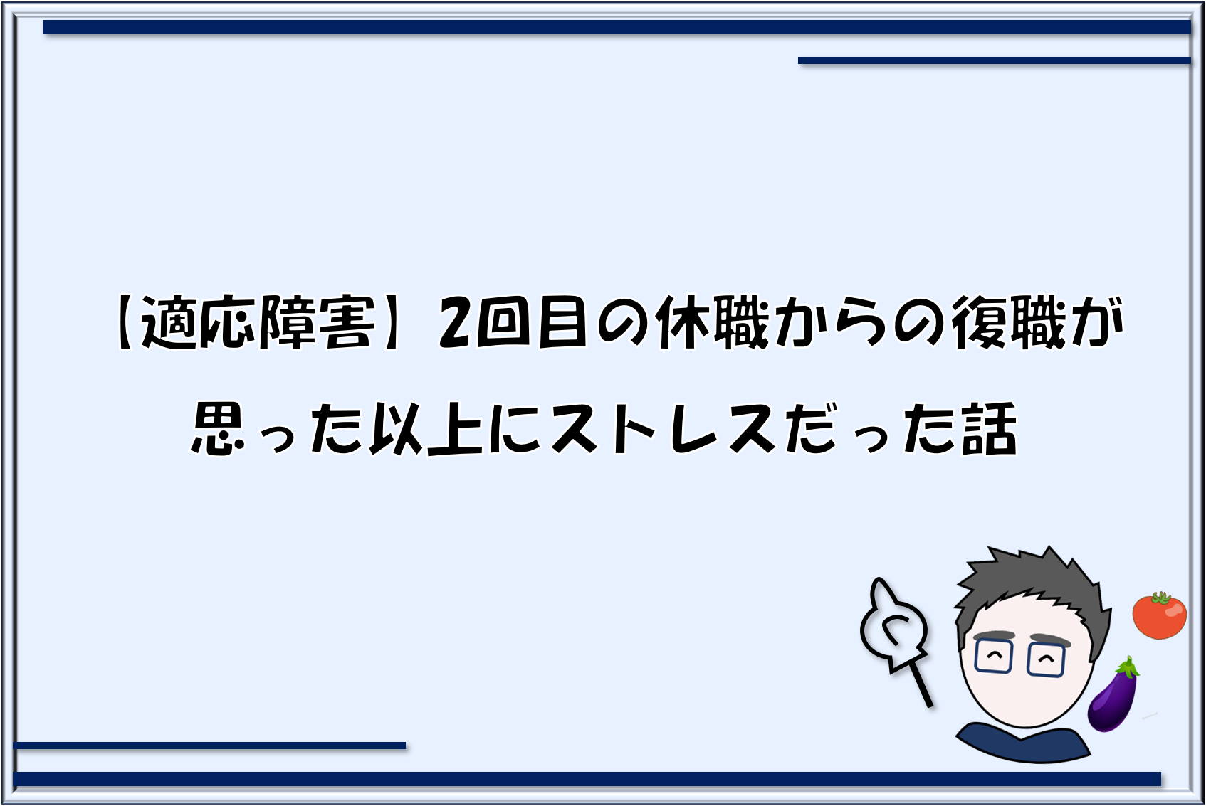 ということで、適応障害になって2回目の休職(ちなみに今回は、睡眠障害という診断でしたが)明けの復職記録でした。