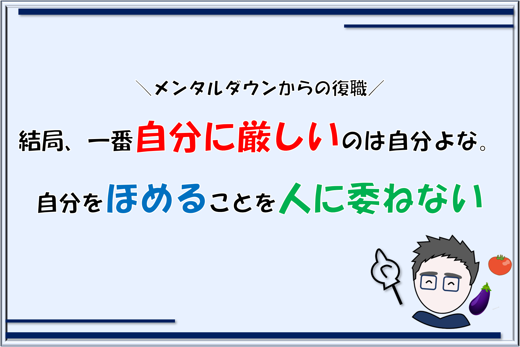 実際、よくやってるよ、ホンマ、自分。病んでしまった職場でさ。復帰して。